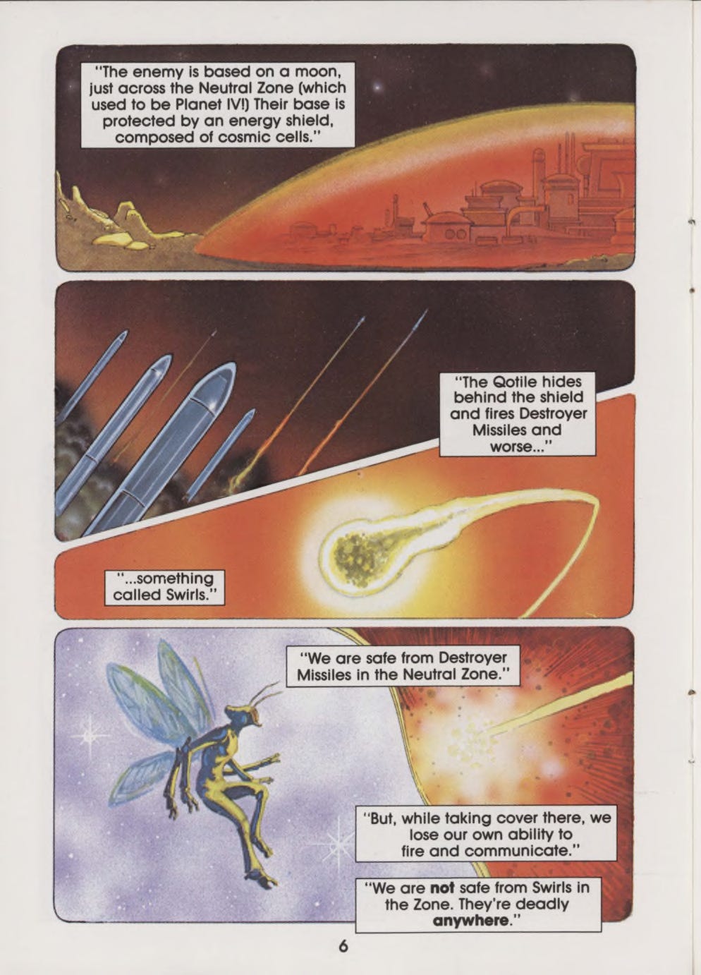While programming the game, Warshaw went down a Mantlo-esque world-building rabbit hole, coming up with a backstory for the Yar civilization, who they were fighting, and why. The game tested well, despite its somewhat weird design, and Atari leaned in hard to market it, even going so far as to commission a small comic book to explain Warshaw’s backstory and also serve as a narrative instruction manual. It was a really innovative step for the time, and as much as I loved playing Yars’ Revenge, I loved the comic book even more.